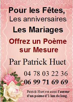 En parallèle à ses propres ouvrages, Patrick Huet compose aussi des poèmes personnalisés. Il existe deux formules :